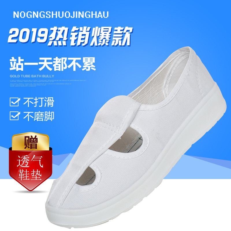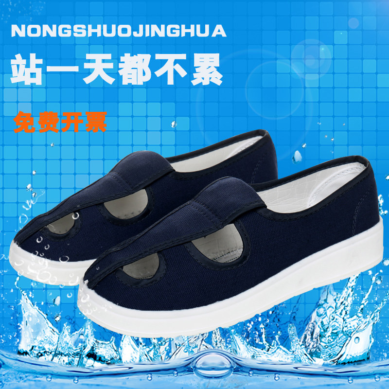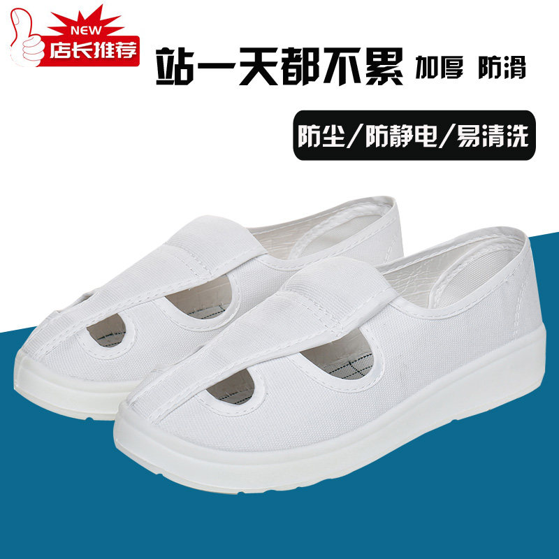 Antistatic shoe PU thickened Softsole Canvas Four-hole Workshop Clean Deodorant Summer Breathable Protection Working Men's Dust-free Shoes
