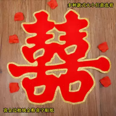 Flocking gold powder happy word stickers wedding supplies Daquan wedding room decoration doors and windows bedroom wall big red Double Happy stickers