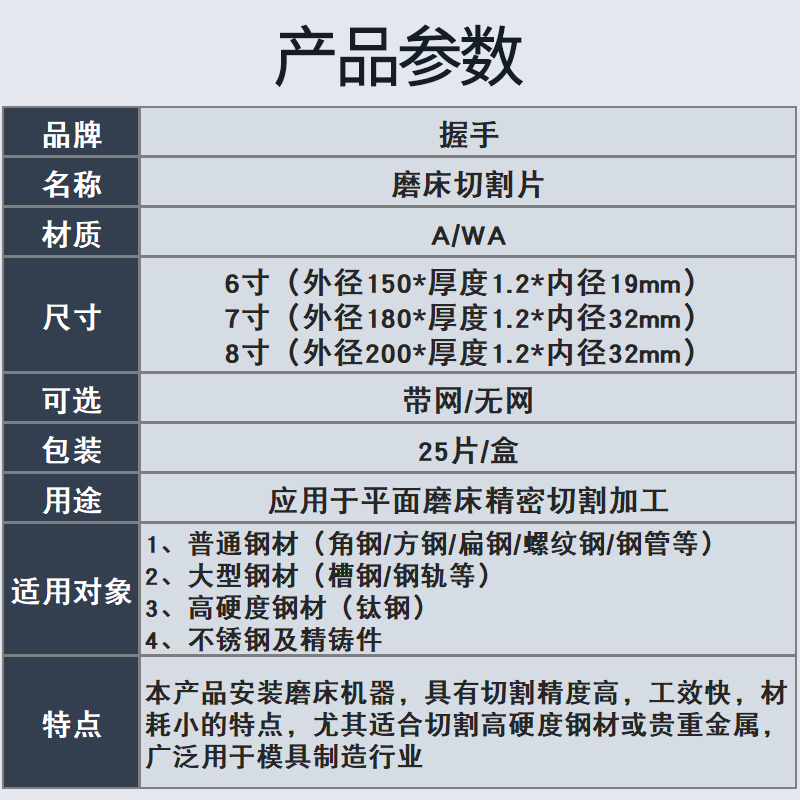 Handshake brand cutting sheet ultra-thin grinder cutting sheet 6 inches 7 inches 8 inches 200*1 2*32 with net