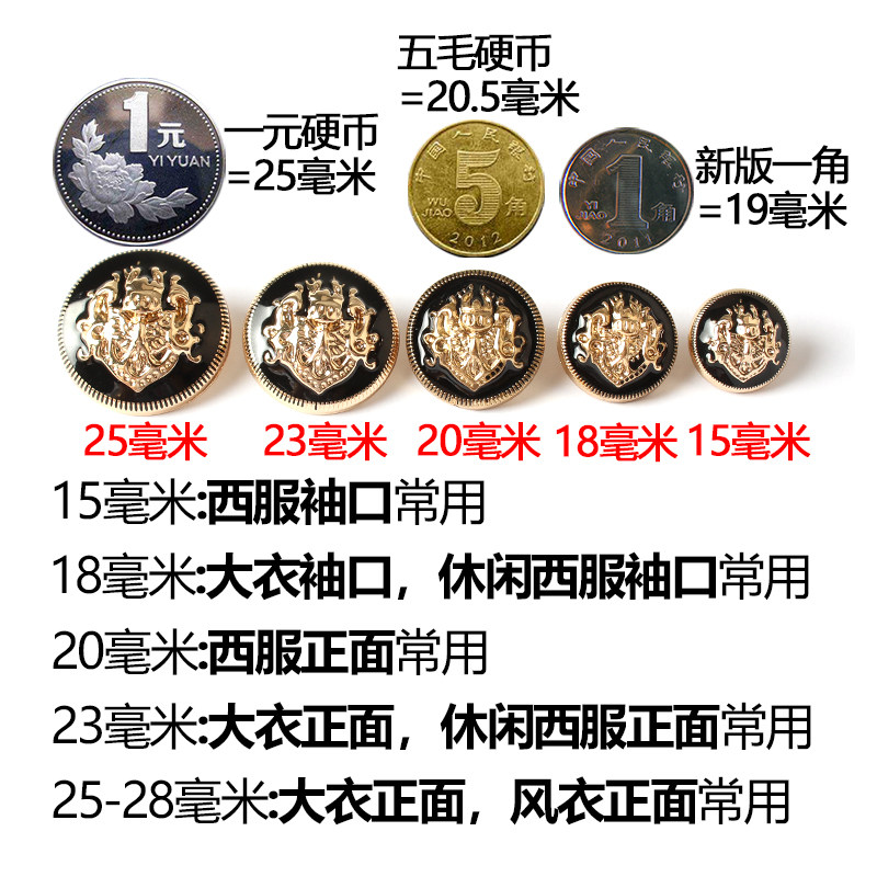 High-grade metal buttons for men and women versatile gold tops round sweater suit suit coat decoration clothes buttons