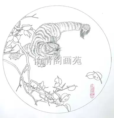 Meticulous painting white drawing draft round Cat white painting landscape flowers and birds animal line drawing copy material 337