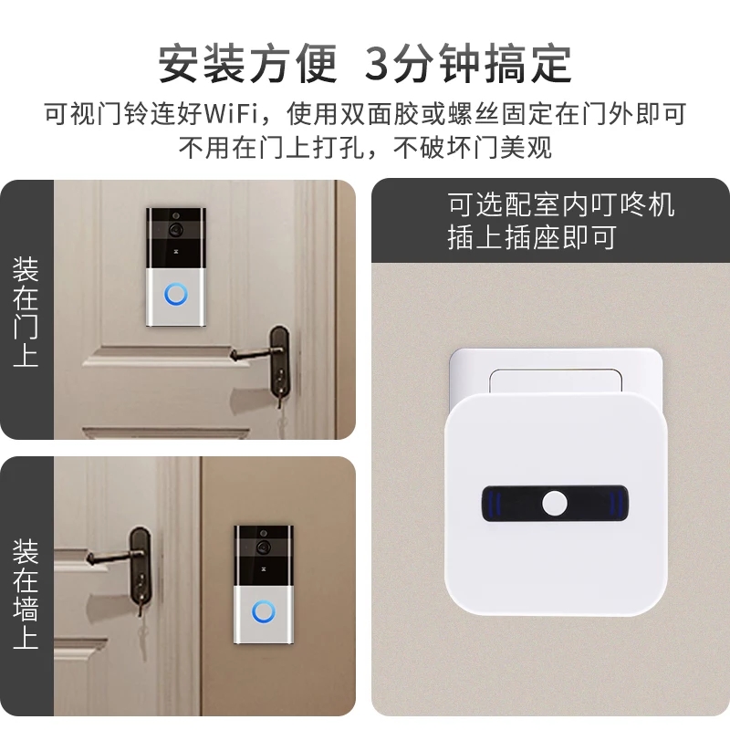 High-definition wireless visual doorbell intercom home free of punch WIFI mobile phone remote smart cat eye bib camera