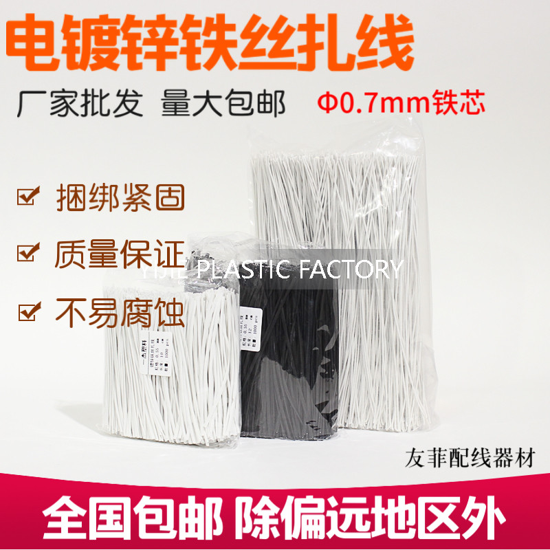 0-7mm packs of plastic zezsilk plastic PVC colligation with binding wire plated zinc Zass iron core Zinc black and white strapping line