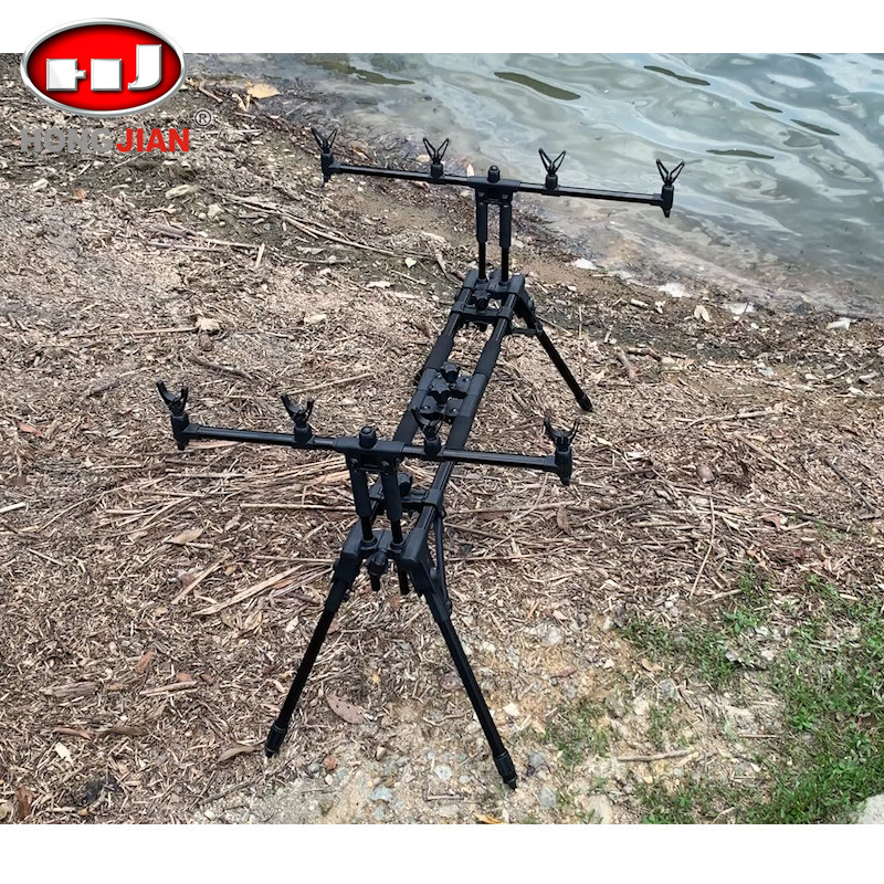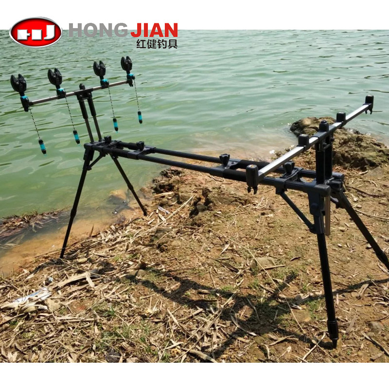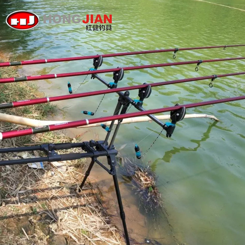 Hongjian aluminum alloy four-legged warehouse fishing bracket can be equipped with alarm sea pole throwing Rod folding telescopic bracket multi-head turret