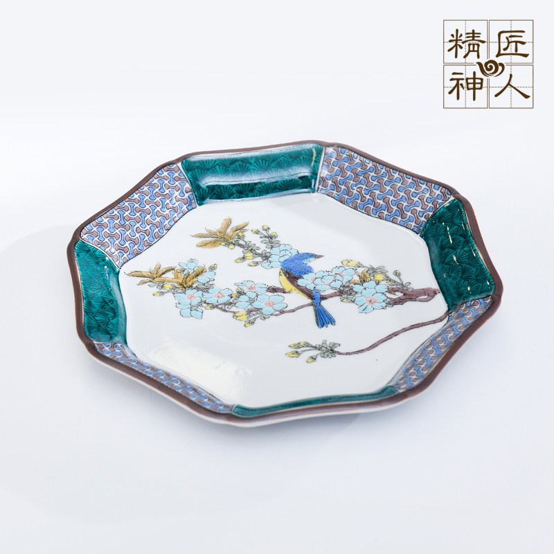 Spot Japan Imports Jiugu Burned Cherry Blossom Mountain Nestled in sunflower Octagon Petri Dish Anise Ceramic Flower Bird Dish Cutlery