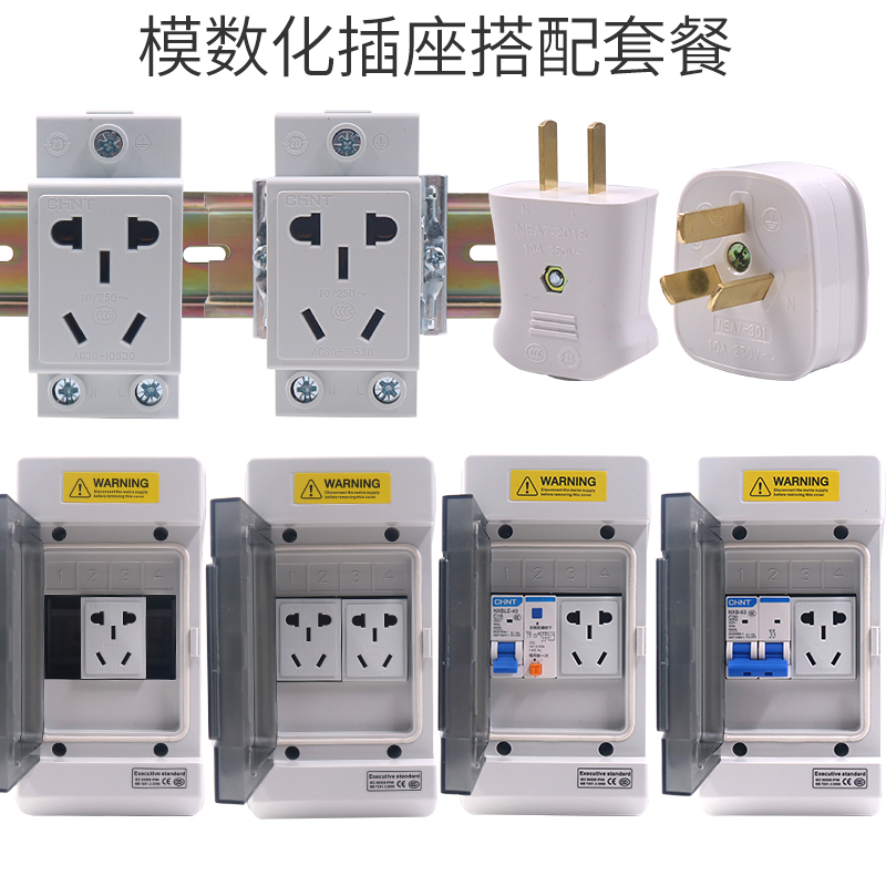 CHINT AC30 five-hole 5 two three plug 10A air open air switch Modular distribution box rail type meter socket