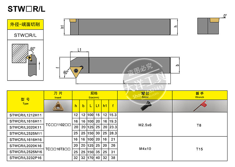 STWCR1212H11 Front knife STWCL1212H11 Reverse knife STWCR1616H11 Front knife STWCL1616H11 Reverse knife