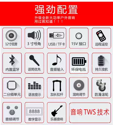 Wanlida S8S12 inch outdoor lever square dance sound sound sound wireless Bluetooth high power speaker mobile portable home singing fast hand live K song wireless microphone heavy subwoofer