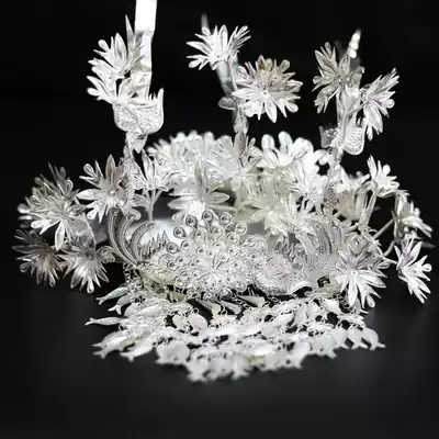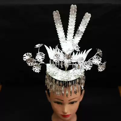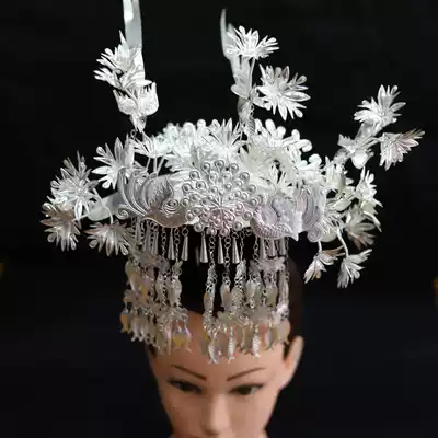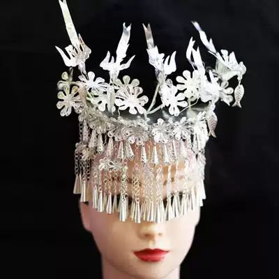 Bride hair accessories retro temperament National style crown Miao Dong silver jewelry Net red super fairy long hanging tassel exaggerated personality