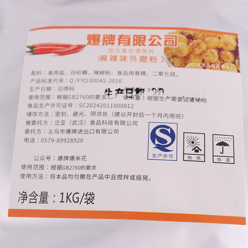Spicy popcorn flavor ingredients of various taste ingredients Sprinkle powder special ingredients, spicy flavor powder 1000g