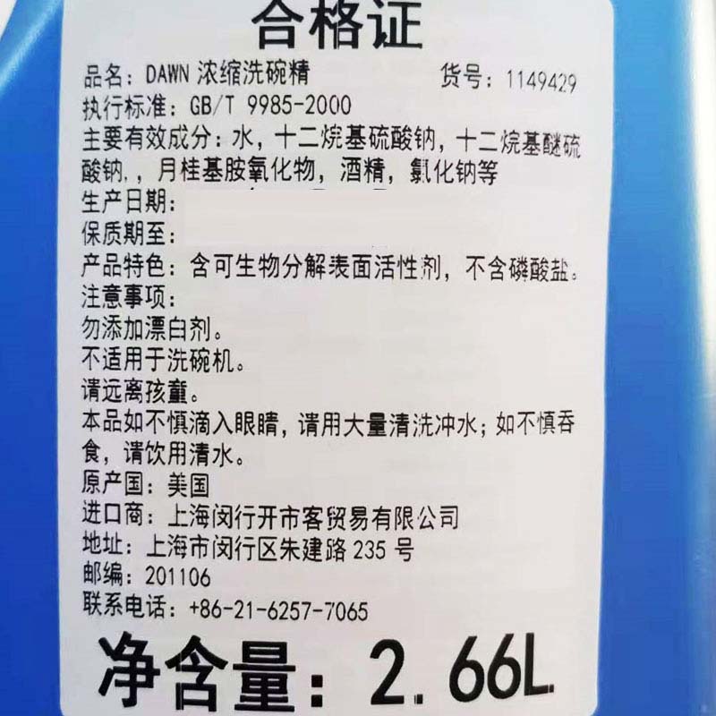 Spot US imported DAWN brand concentrated dishwashing liquid dishwashing liquid washable pet 2 66 liters