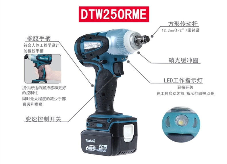Makita rechargeable impact electric screwdriver DTW250RME Z screwdriver impact drill 1 2 square head socket pneumatic wrench
