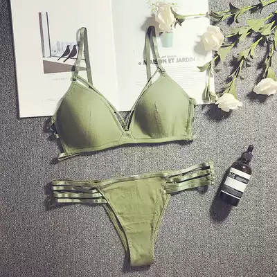 European and American simple triangle soft cup cotton without steel ring women's underwear cross beautiful back sexy and comfortable thin underwear set