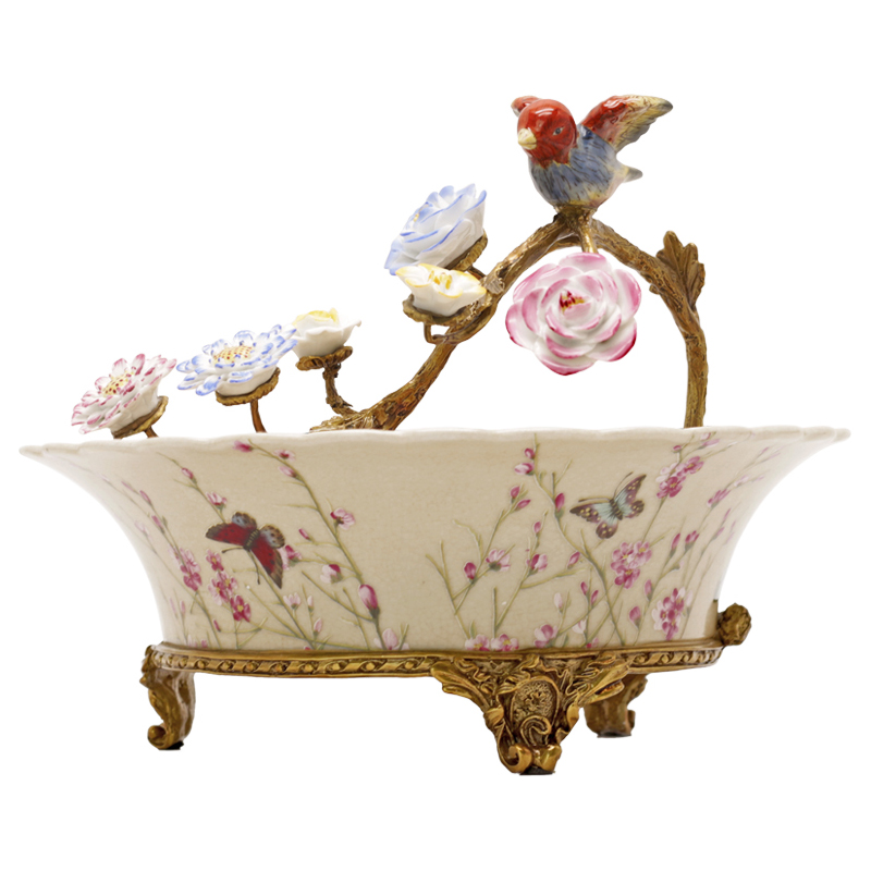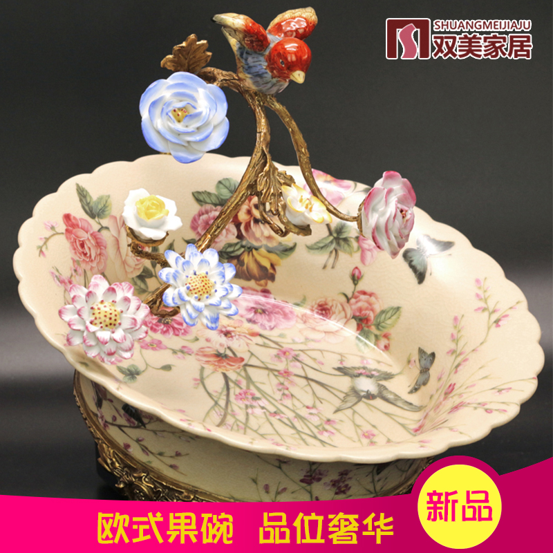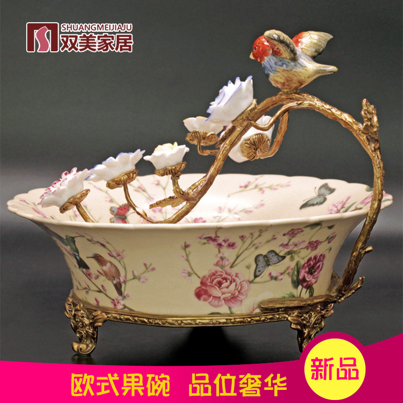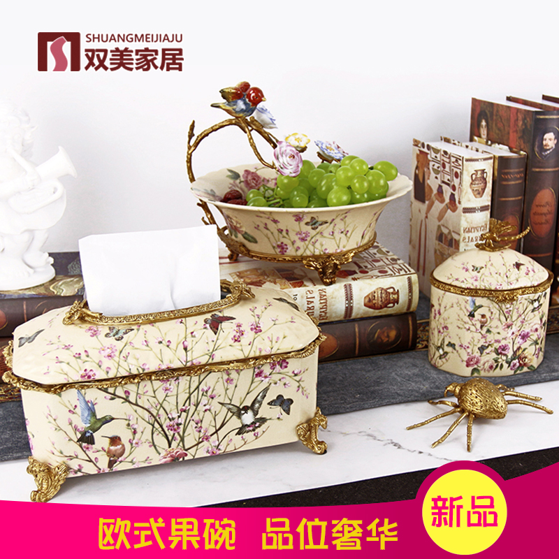 European coffee table Fruit plate set High-grade three-piece set Luxury household candy storage American pure copper package Porcelain ornaments