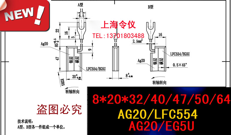 LFC554 wind power carbon brush 8X20X32 8X20X32 EG5U EG5U wind power generator grounding carbon brush 8 * 20 * 32