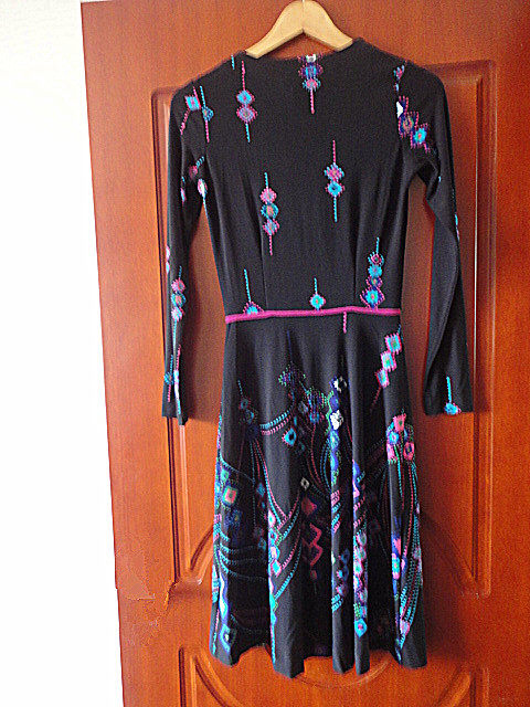 LEONA EDMISTON RUBY Black Purple Red Long Sleeve Tip Colored Rhomboid Printed Elastic one-piece Wrap Dress
