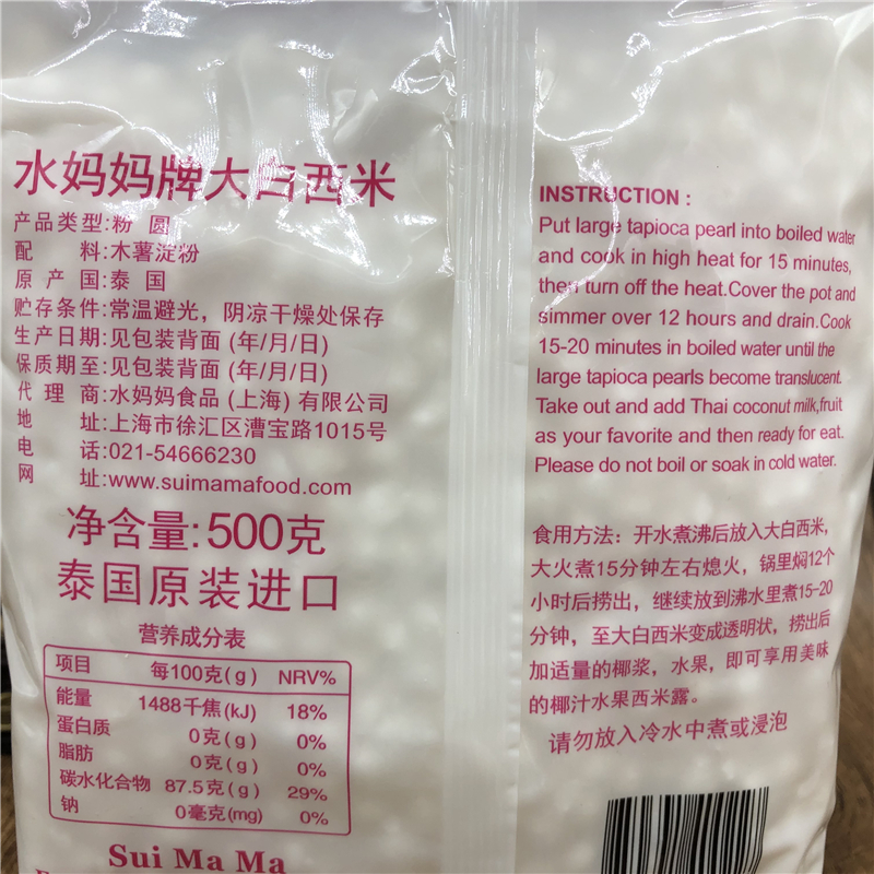 5 Pack 1 Water Mom Grand White Simi Thailand Import Big Grain Simi Coconut Pulp West Midew Raw 500G