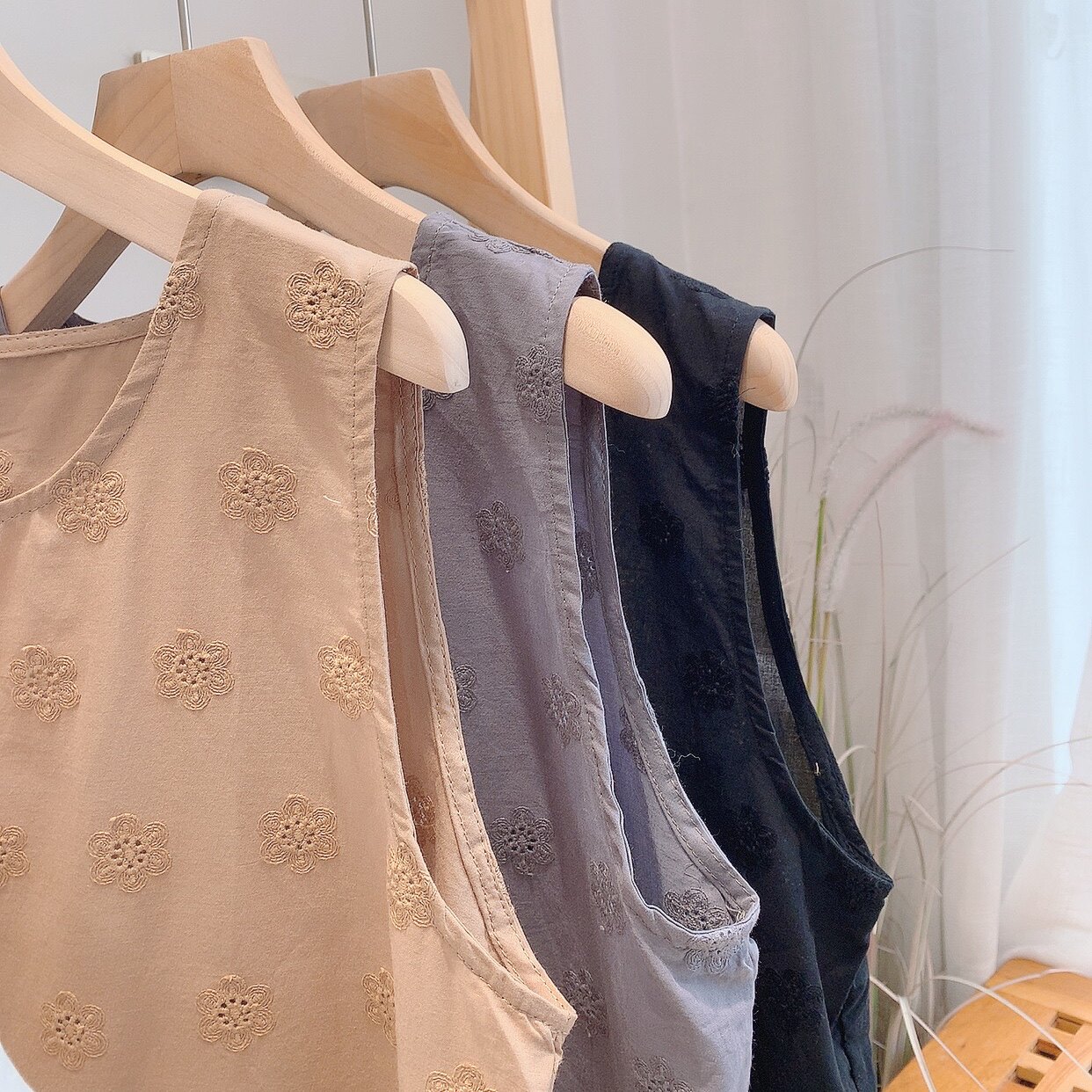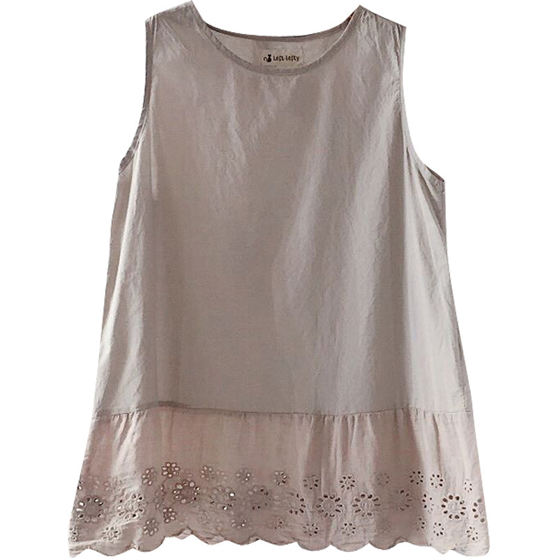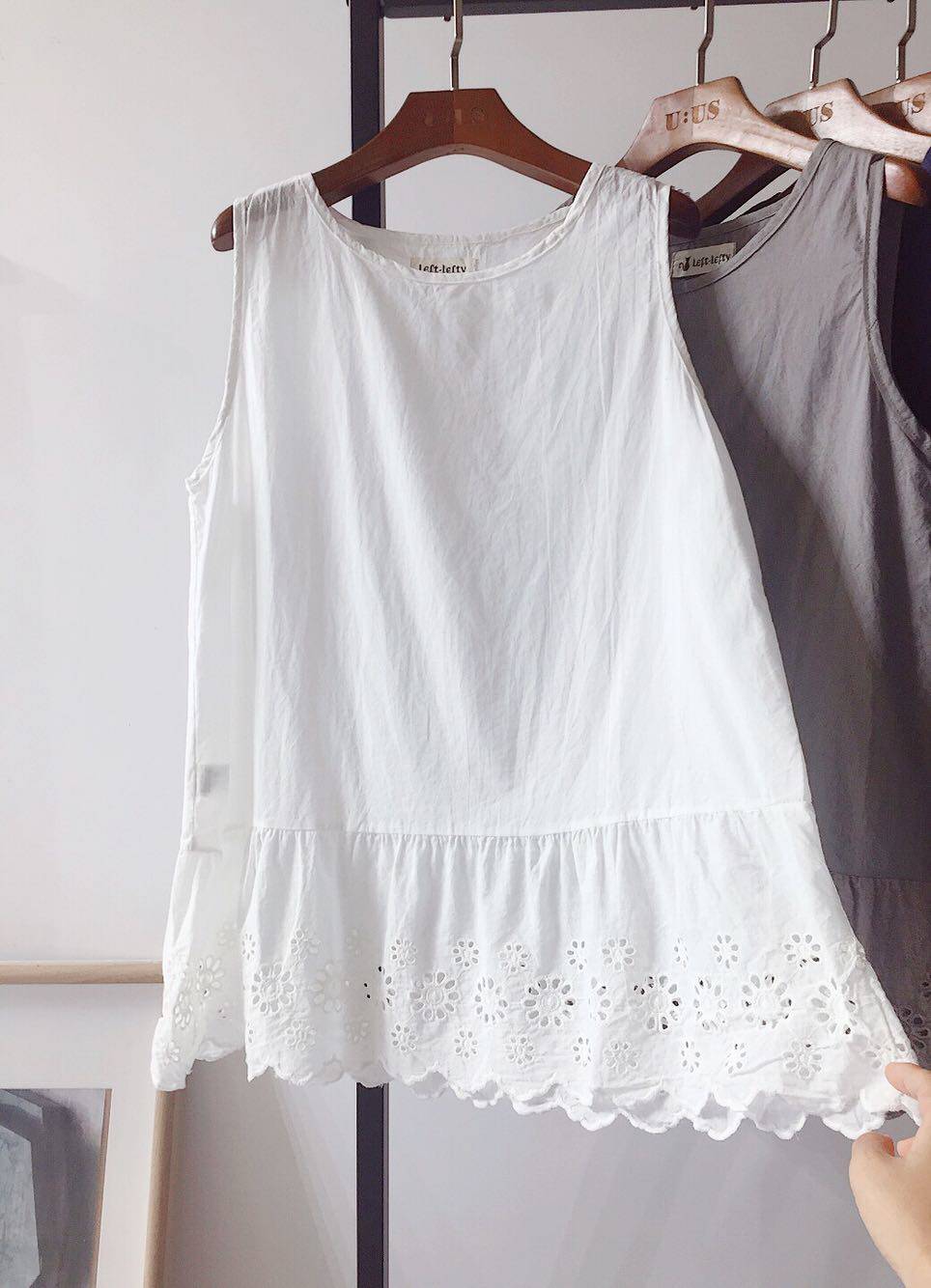 2022 Summer New Embroidered Lace Lace Lower Swing Loose Pure Cotton Cloth Sleeveless Vest Beats Bottom Son Woman Sleeveless Vest