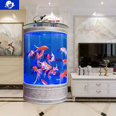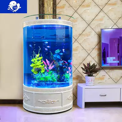 European semi-circular goldfish tank aquarium living room wall floor glass ecological cylindrical fish tank free of water