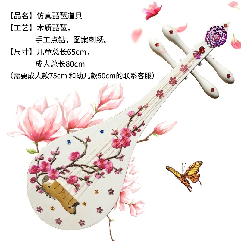 Wooden performance Pipa dance with light riding adult children Dunhuang dance Pipa photo gallery with emulated pipa props