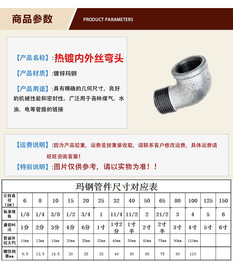 46 points 1 inch hot-dip galvanized Mansteel pipe fittings elbow inner and outer silk elbow galvanized inner and outer silk elbow DN15 20 25