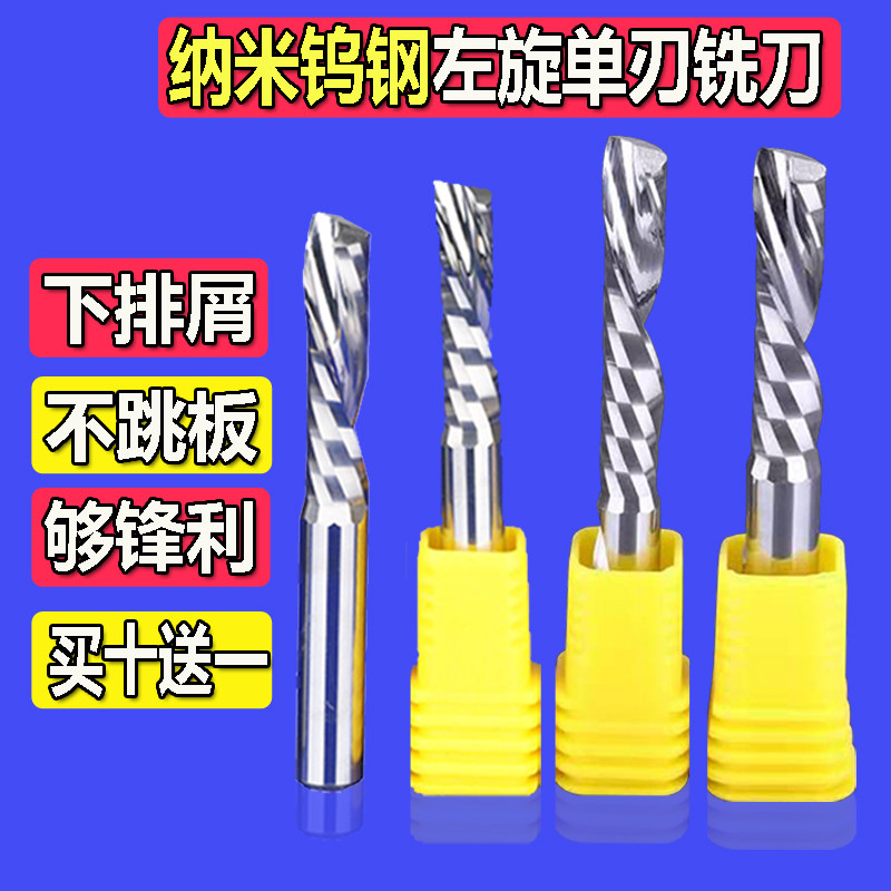 Imported left-hand single-edge spiral milling cutter 4mm6mm lower cutting acrylic PVC density board woodworking engraving tool