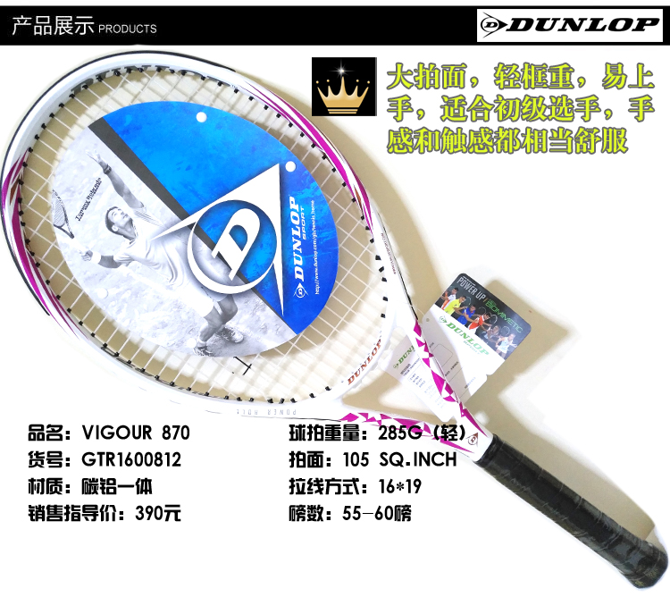 Special DUNLOP tennis racket for beginners and men's and women's training students professional men's and women's rackets