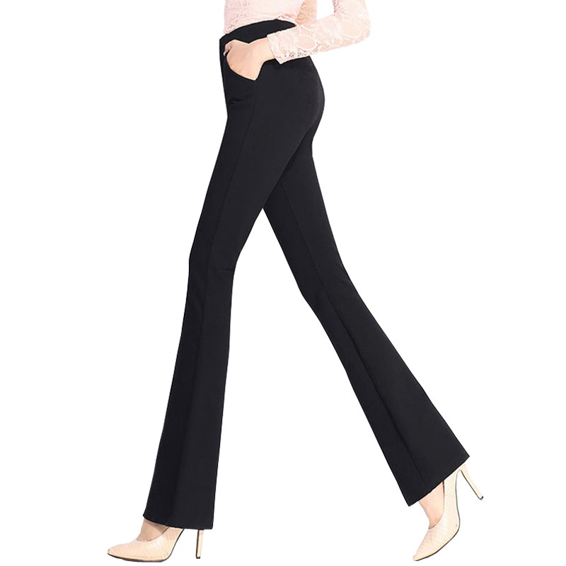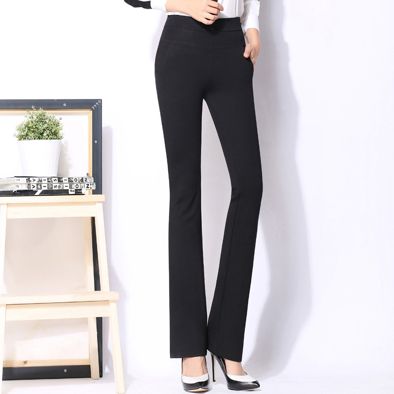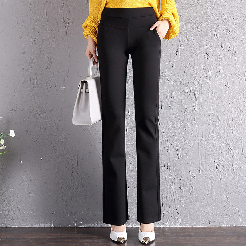 Spring and Autumn Micro-Flare Pants Women's Ninth Pants Large Size High Waist Elastic Straight Trousers Korean Version Black Casual Suit Pants