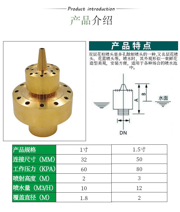 All copper 1 inch 1 inch and a half double-layer style nozzle layer flower nozzle rockery pool landscape waterscape fountain nozzle