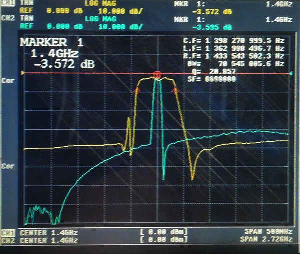 1400MHz Radio Frequency coaxial band pass SAW filter 1dB bandwidth 45MHz SMA connector