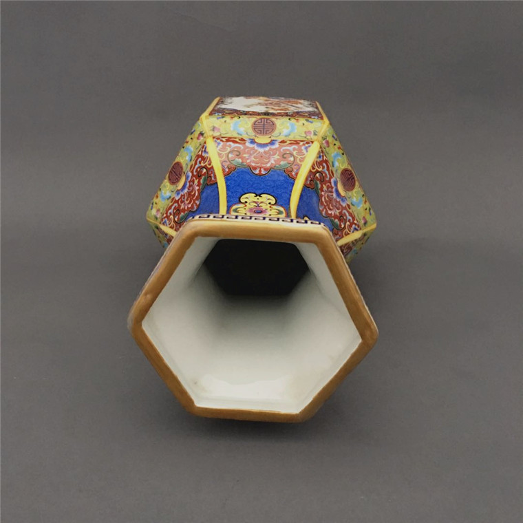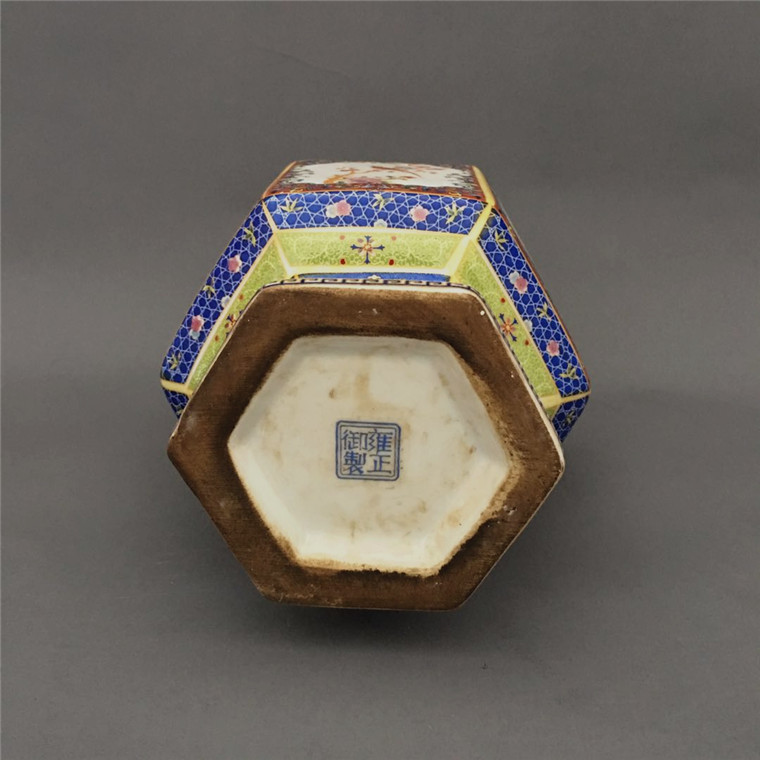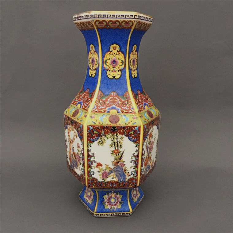 Dry Lon Pink Enamel Colorful Hexagonal Flower Bird Bottle Antique Porcelain Collection Bogu Shelf Swing old stock Classical Artwork-Taobao