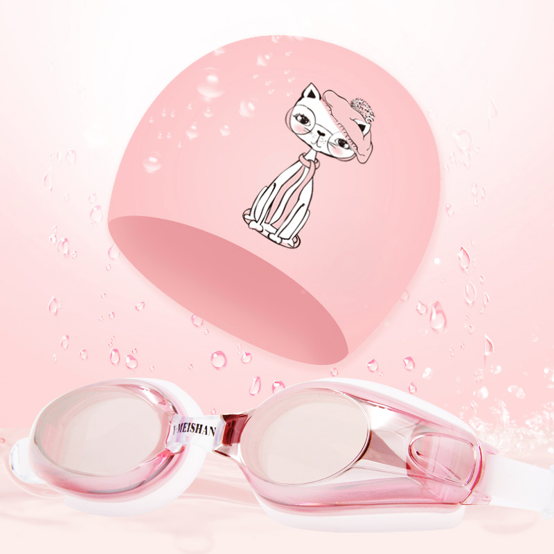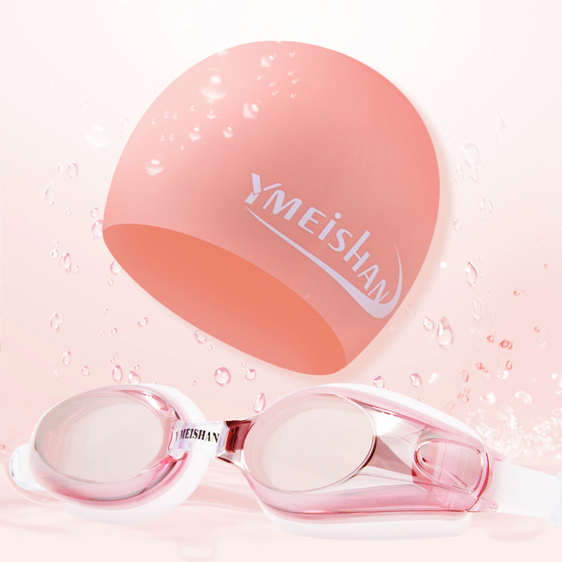 Also Mei Shan Swimming cap swimming goggles suit woman long hair South Korea cute swimming cap silicone swimming gear waterproof without stranglehead