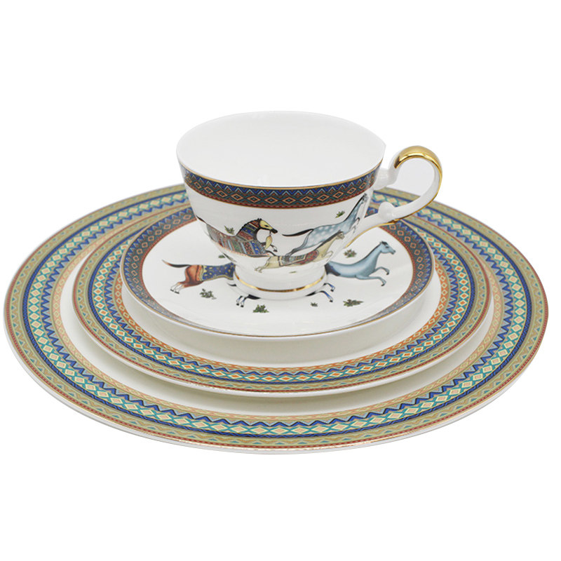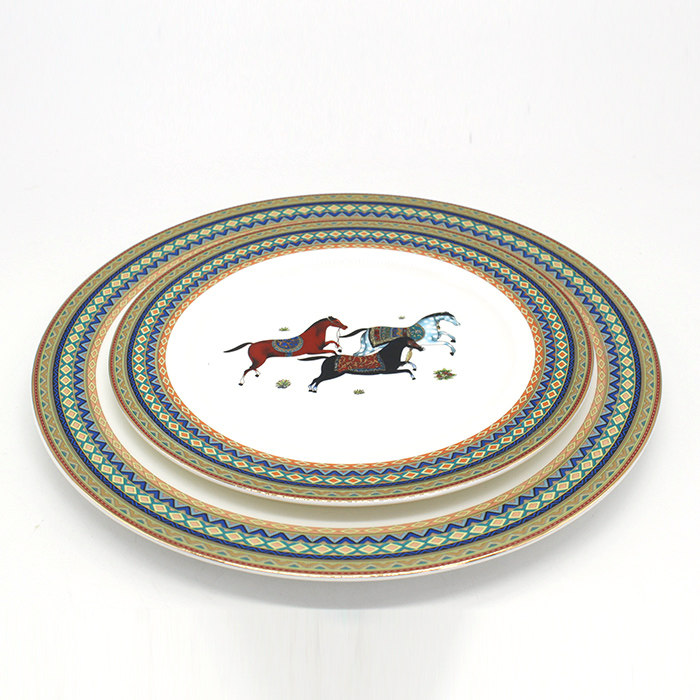 European-style American-style model room dining table Western-style Western-style tableware set embossed horse style neo-classical post-modern bowls and plates