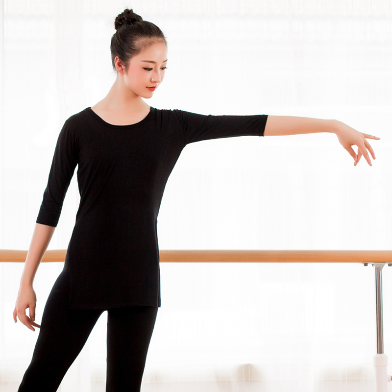 Dance practice clothing body female adult modern dance clothing classical dance waist slit ethnic mid-sleeve modal top