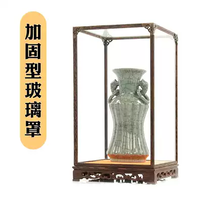 Mahogany carved glass cover decoration transparent display box craft gift decoration dust-proof antique text play Buddha statue base glass cover