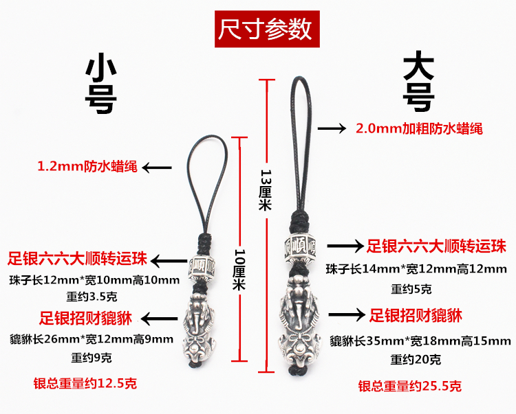 Small Six Six Big Shun Cat Tassel Pendant 15 g Small Foot Silver Six Big Shun Cat Pendant 12.5 g Large Six Big Shun Cat Tassel Pendant 28 g Large Foot Silver Six Big Shun Cat Pendant 25.5 grams