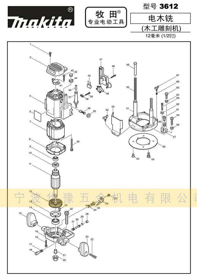 Makita 3612 rotor Makita 3612 stator Makita 3612 base plate Makita 3612 handle (left) Makita 3612 handle (right) Makita 3612 insulation washer Makita 36