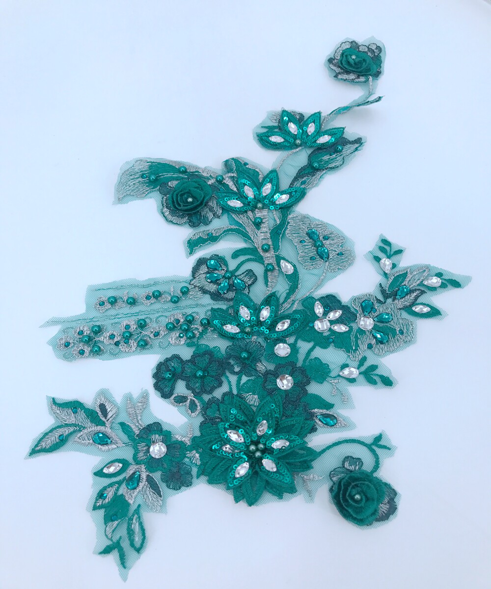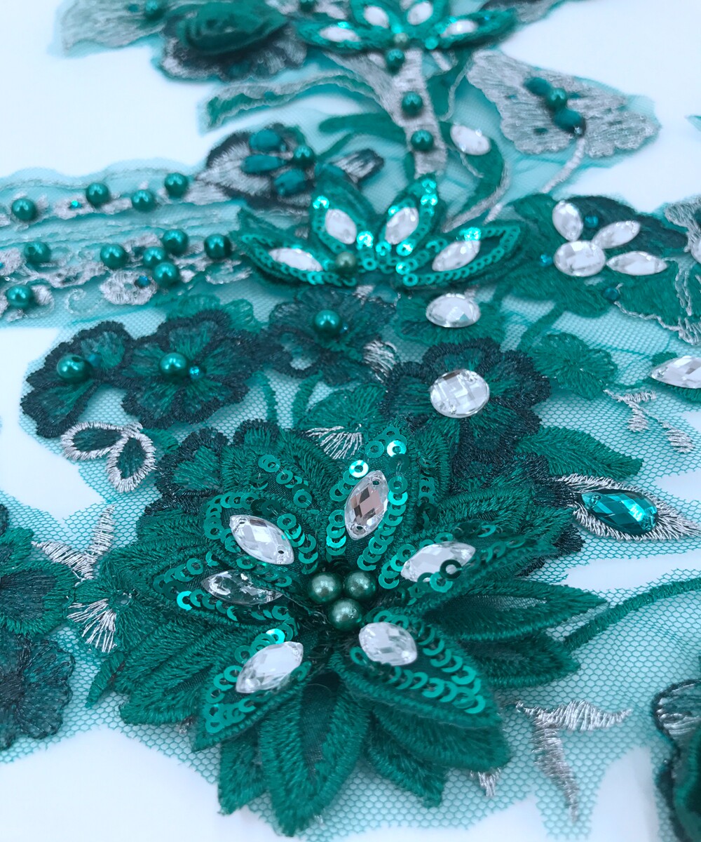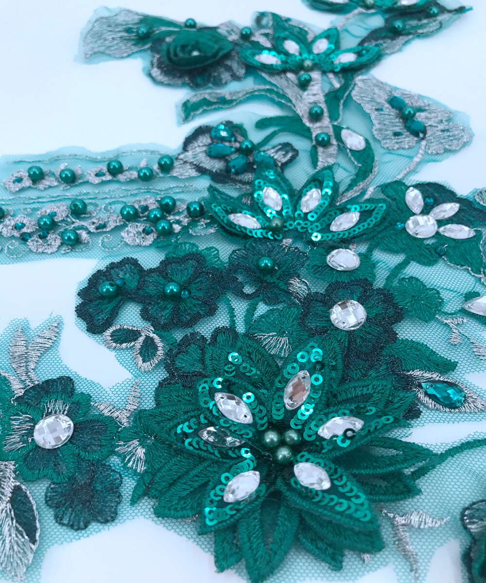 Nail Beading Water Drill Solid Lace Green Embroidered Appliques 40x25 cm Cm Repair Pieces Play Out Gown DIY Accessories