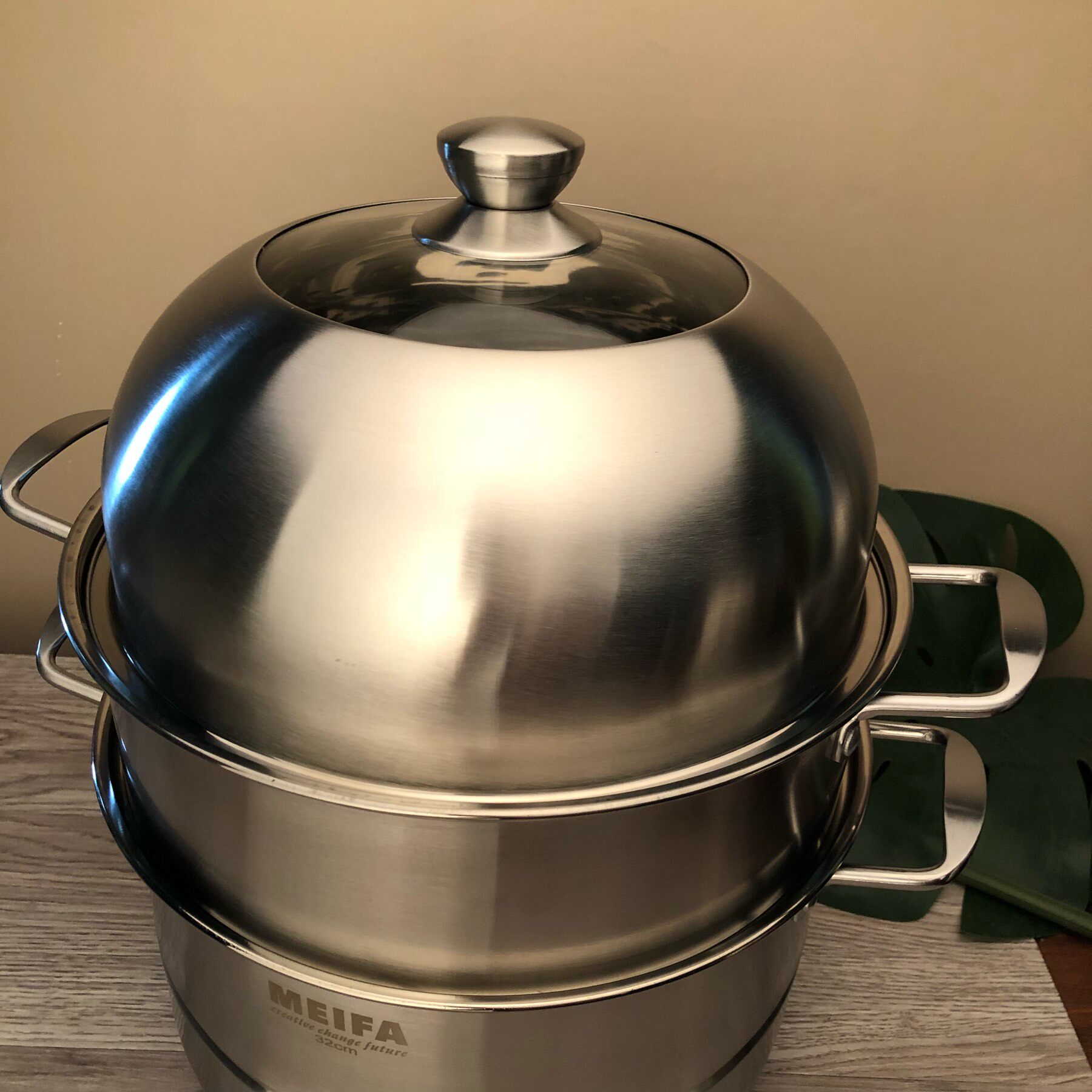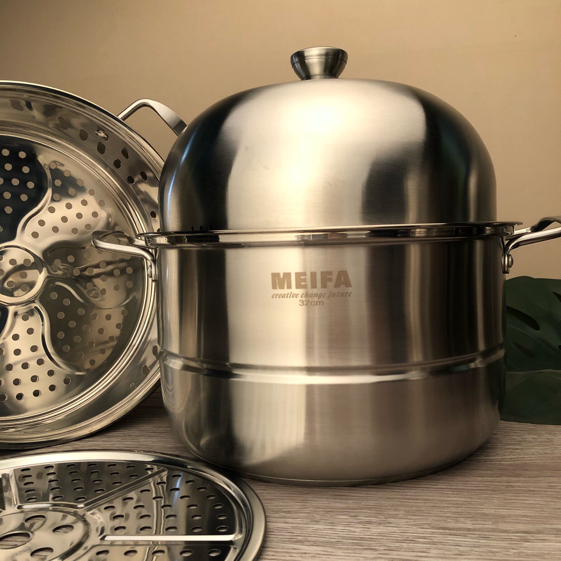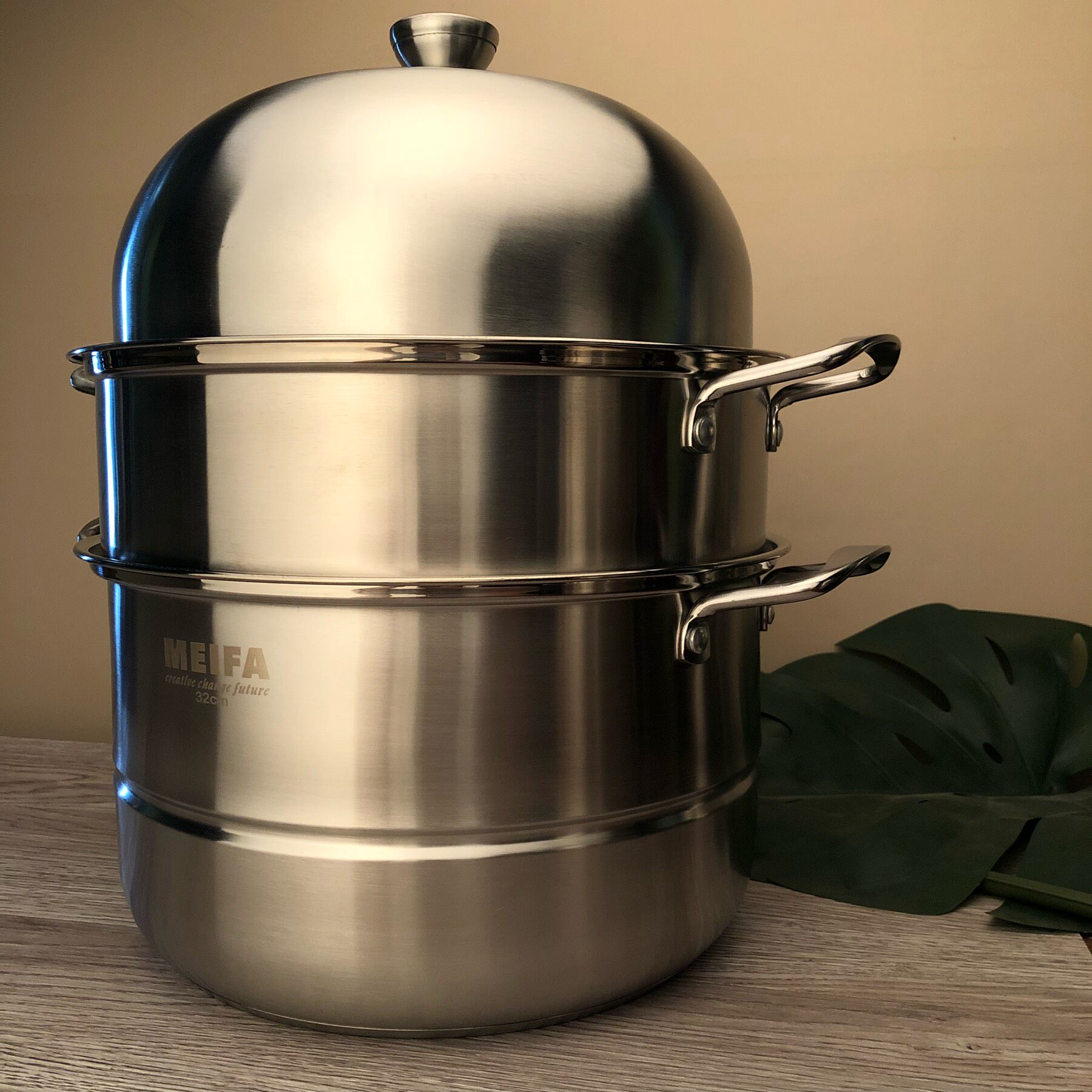 Stainless steel double bottom steamer three layers thickened induction cooker 3 layers two 2 pieces 1 drawer 28 30 32 commercial extra large 40cm