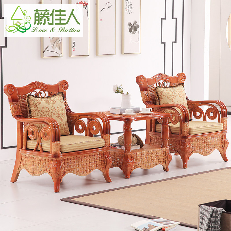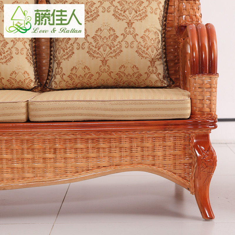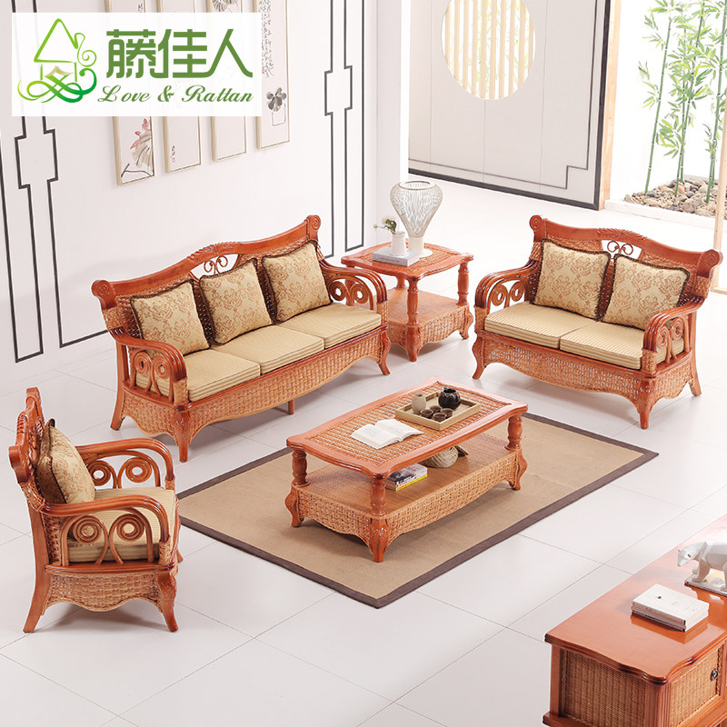 Rattan beauty rattan sofa living room five-piece combination rattan chair solid wood rattan bamboo sofa small apartment three-person rattan sofa HT