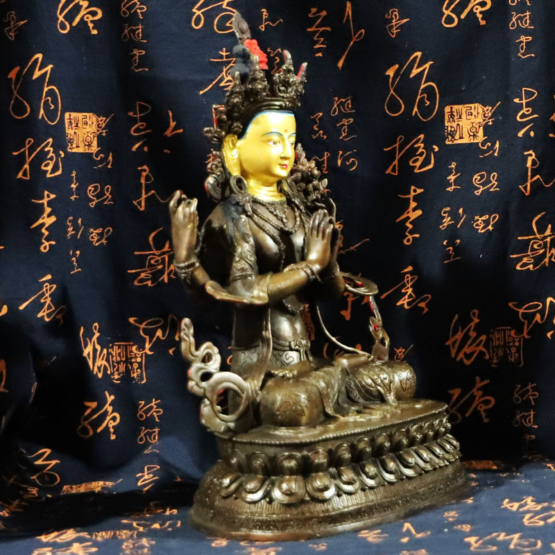 Tibetan Tantric Buddha Statue Nepalese Copper Bronze Gilded Four-Armed Guanyin 1 foot 30cm Knotted