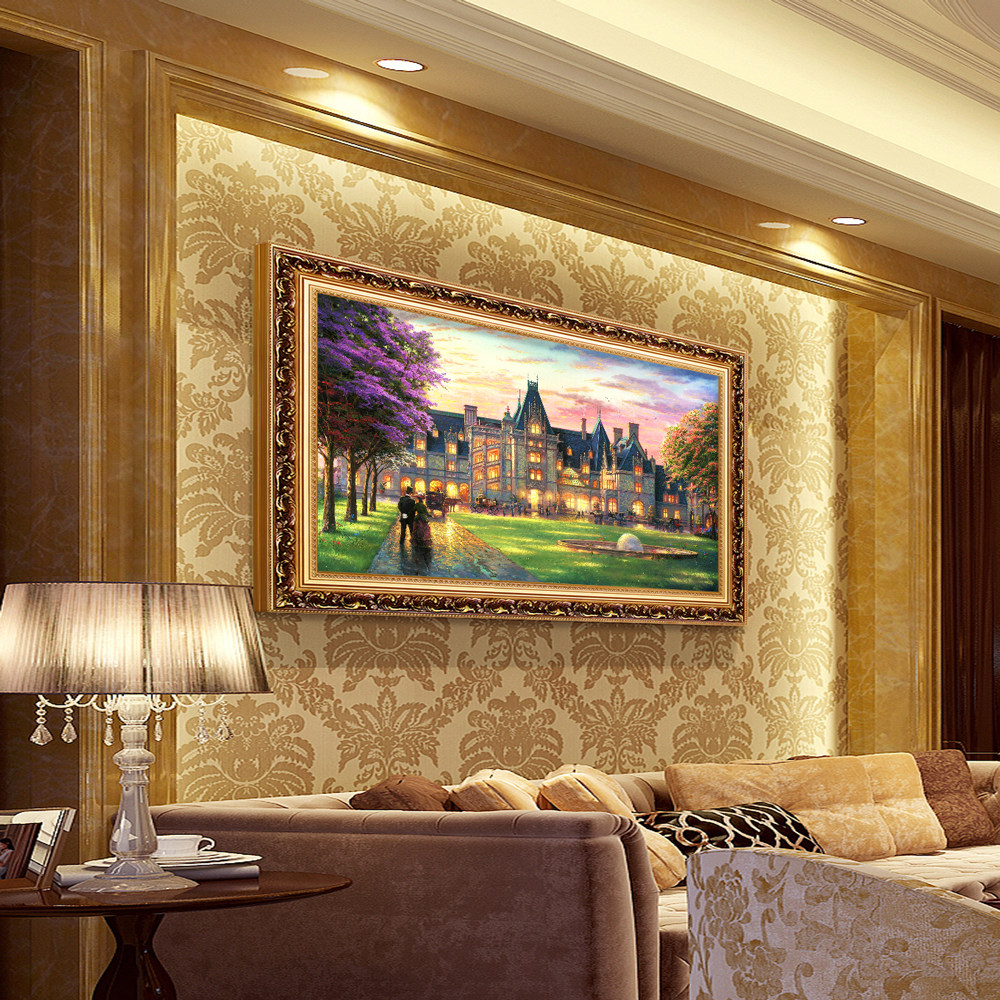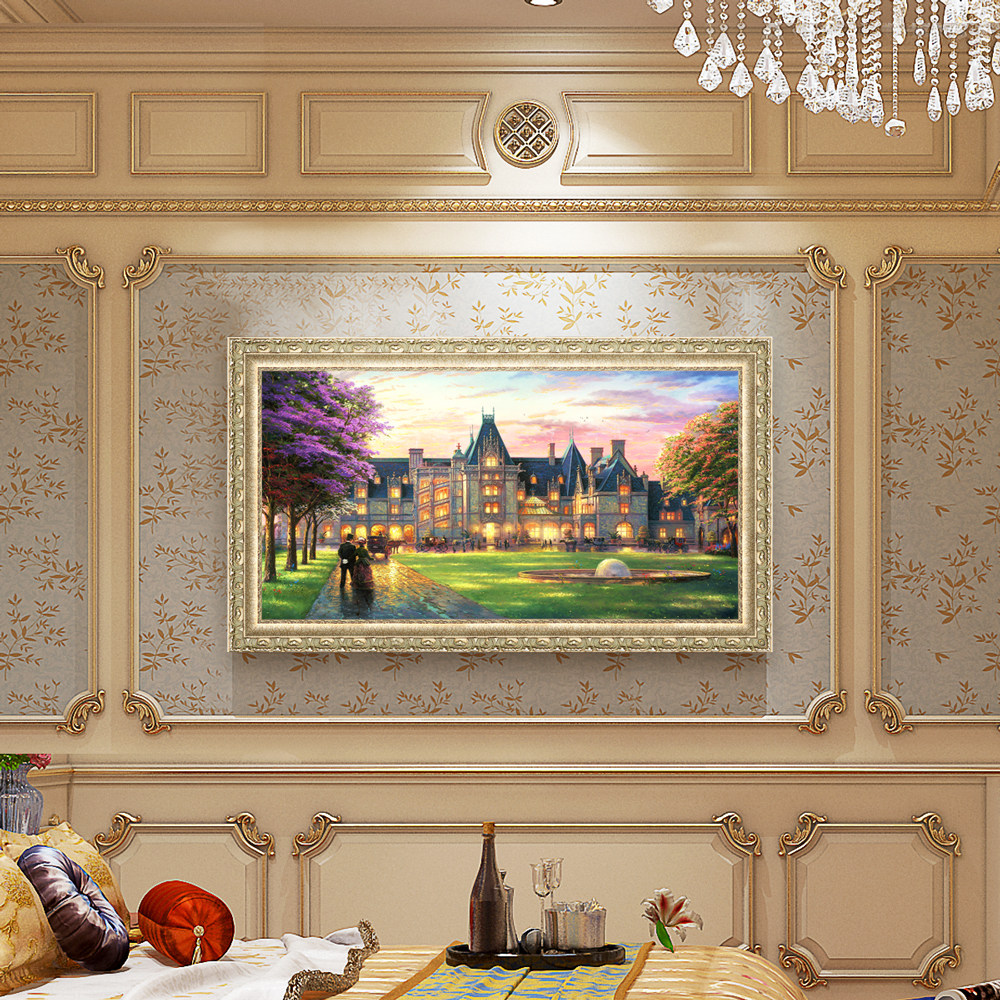 Living room decoration painting European-style sofa background wall hanging painting scenery castle oil painting atmosphere upscale frescoes single web