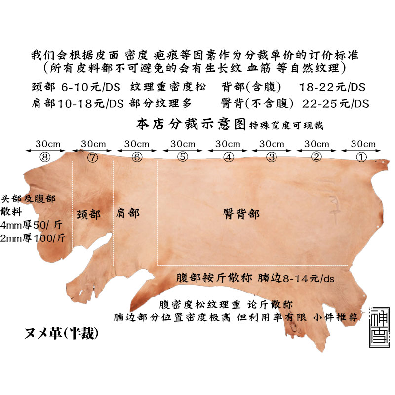 Primary color Tochigi cutting loose cutting the whole piece of Japan imported multi-fat AA grade saddle leather High-gloss vegetable tanned leather Shenxue
