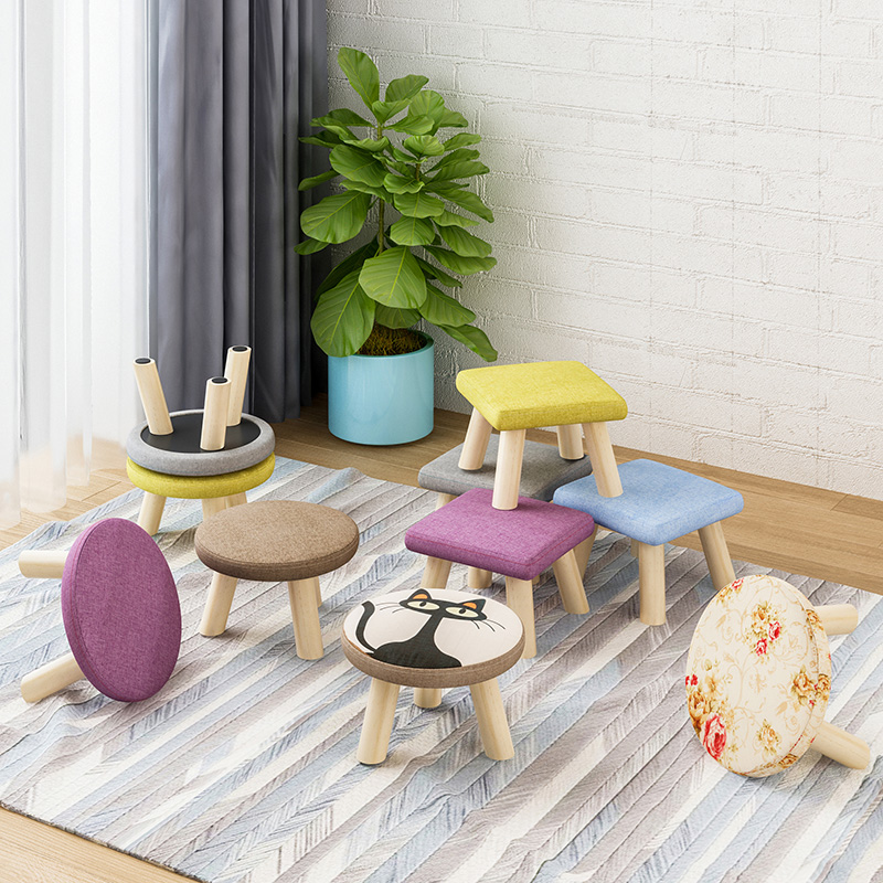 Small stool for home round stool Mushroom Stool Creativity Cute Living Room Small Board Stool Short Stool Solid Wood Cloth Art Changing Shoes footstool-Taobao