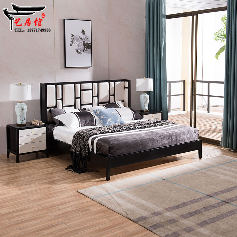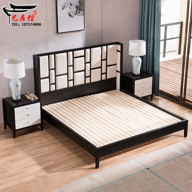 Modern Chinese style solid wood double bed simple bedroom marriage bed solid wood bed master bedroom 1 8 meters bed model room furniture