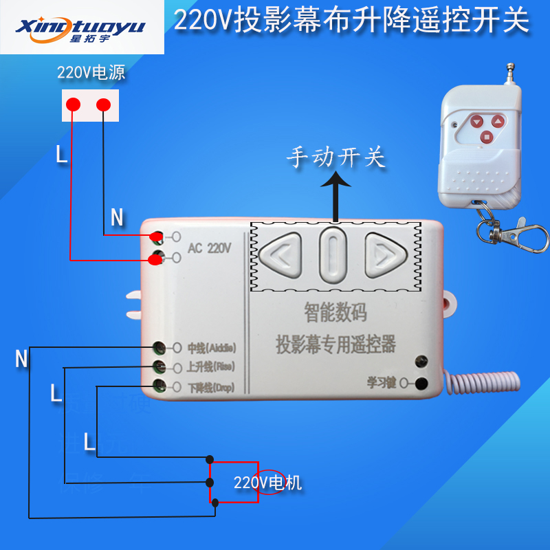 Xingtuoyu AC220V projector electric curtain lifting wireless switch motor forward and reverse electric sunshade
