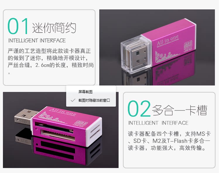 Aluminum shell 4-in-1 metal card reader USB2 more than zero all-in-one high speed universal SD TF mobile phone reader
