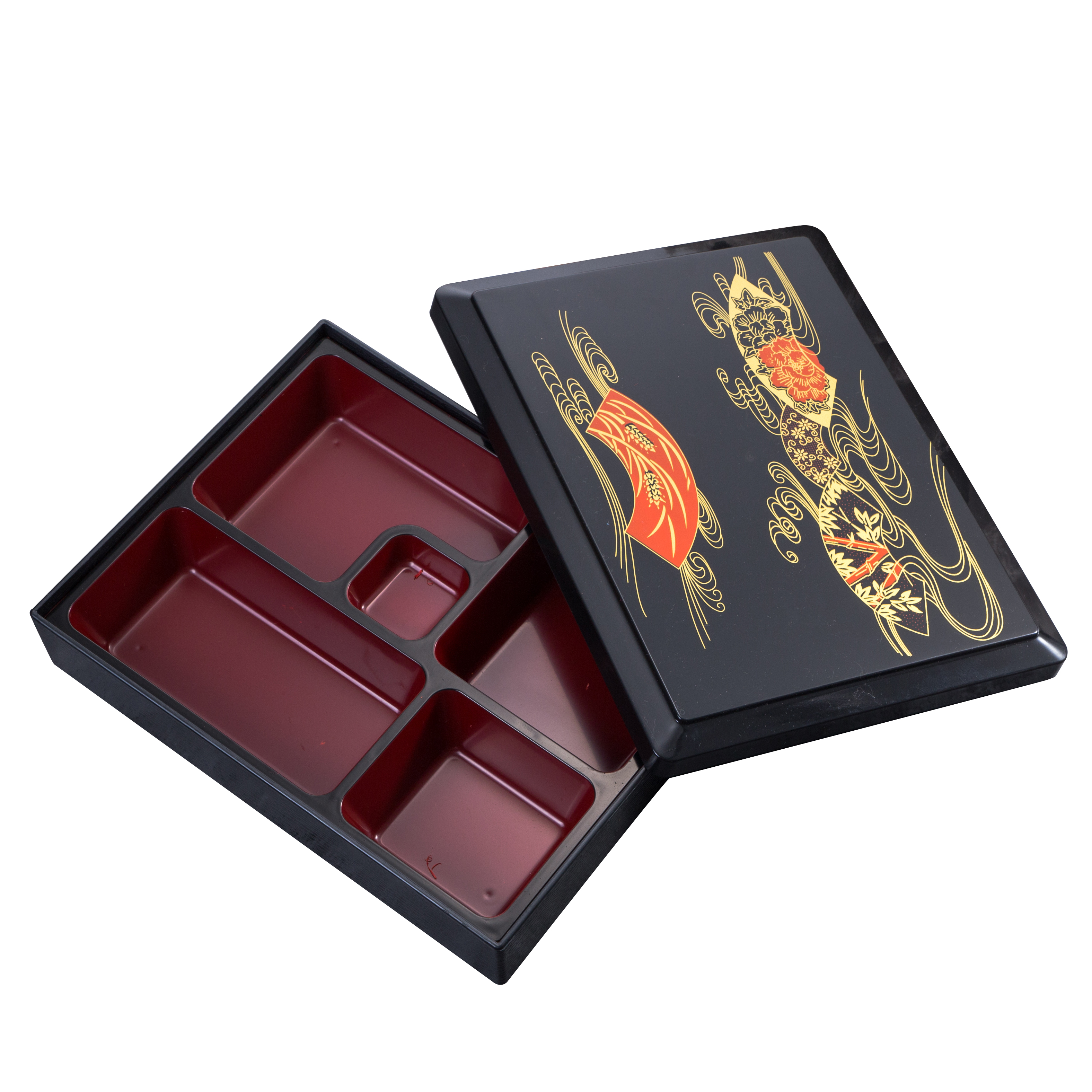 Five-grid wood grain bento box Five-grid printed bento box Six-grid wood grain bento box Six-grid printed bento box 304 four-grid round printed bento box 304 New four-grid printed bento box 304 four-grid square printed bento box