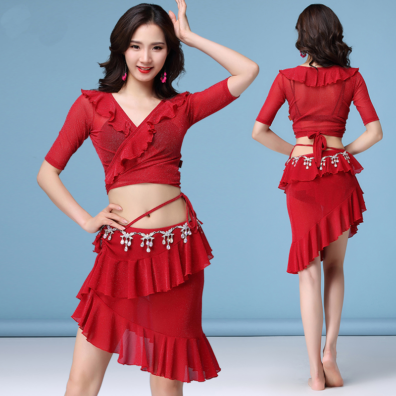 Belly Leather Dance New Adult Sexy Short Skirt Suit Beginners Practice Oriental Dance Costumes Debut for Women in the Summer