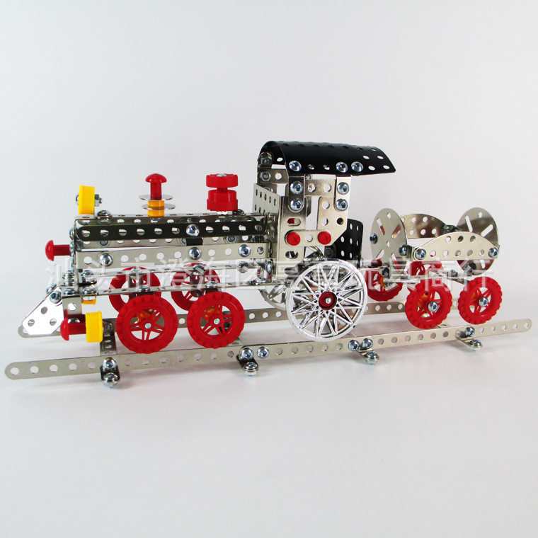 Metal assembled large train with tracks and a carriage DIY hands-on educational toys 3D three-dimensional puzzle
